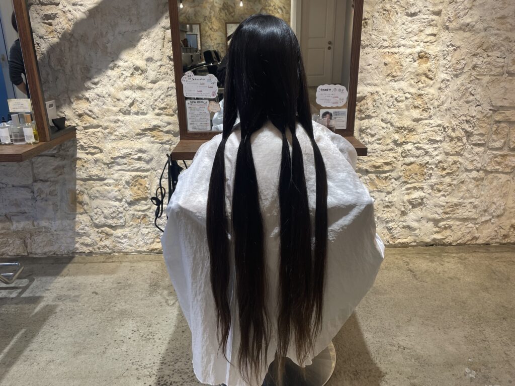 4、5年伸ばされていた髪をばっさり60センチほどカットさせていただきました。